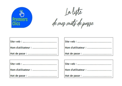 Téléchargez et imprimez votre mémo « La liste de mes mots de passe » ! (Appuyez sur « Ctrl+P » pour lancer l’impression)