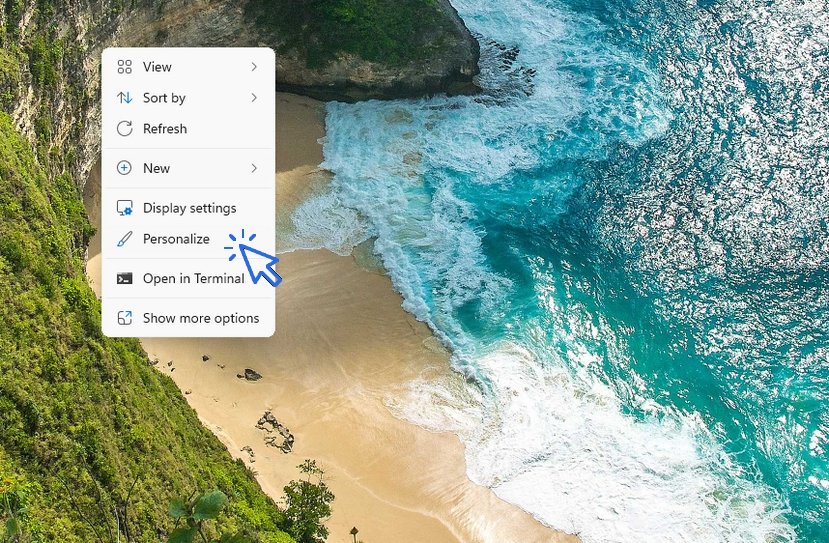 Click “Personalize” using a right-click on the desktop: