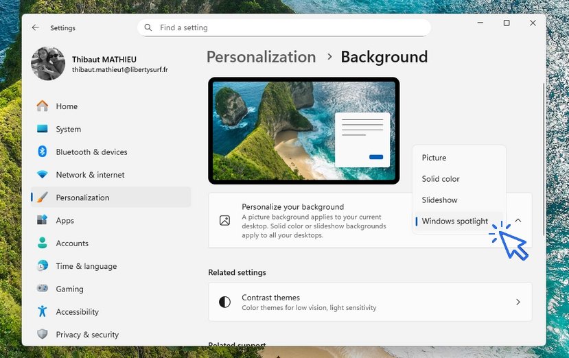 The desktop background, also called wallpaper, can be customized very easily on Windows. You can choose to display a solid color, a single image, or even a photo slideshow. This tutorial is designed for beginners and explains everything step by step.