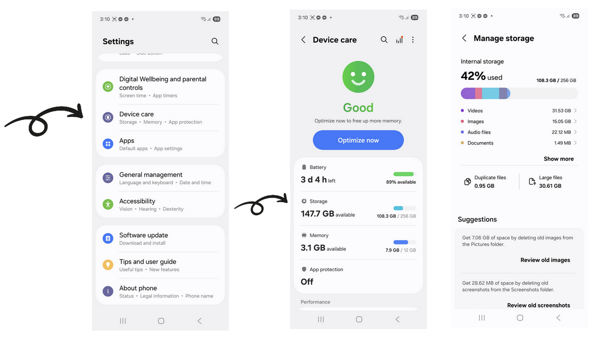 These steps can free up several gigabytes on a full smartphone and improve overall performance.